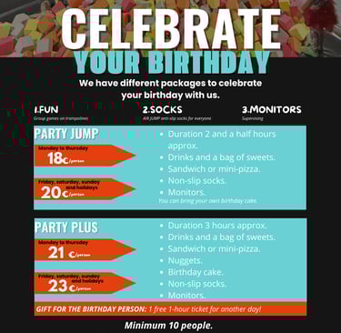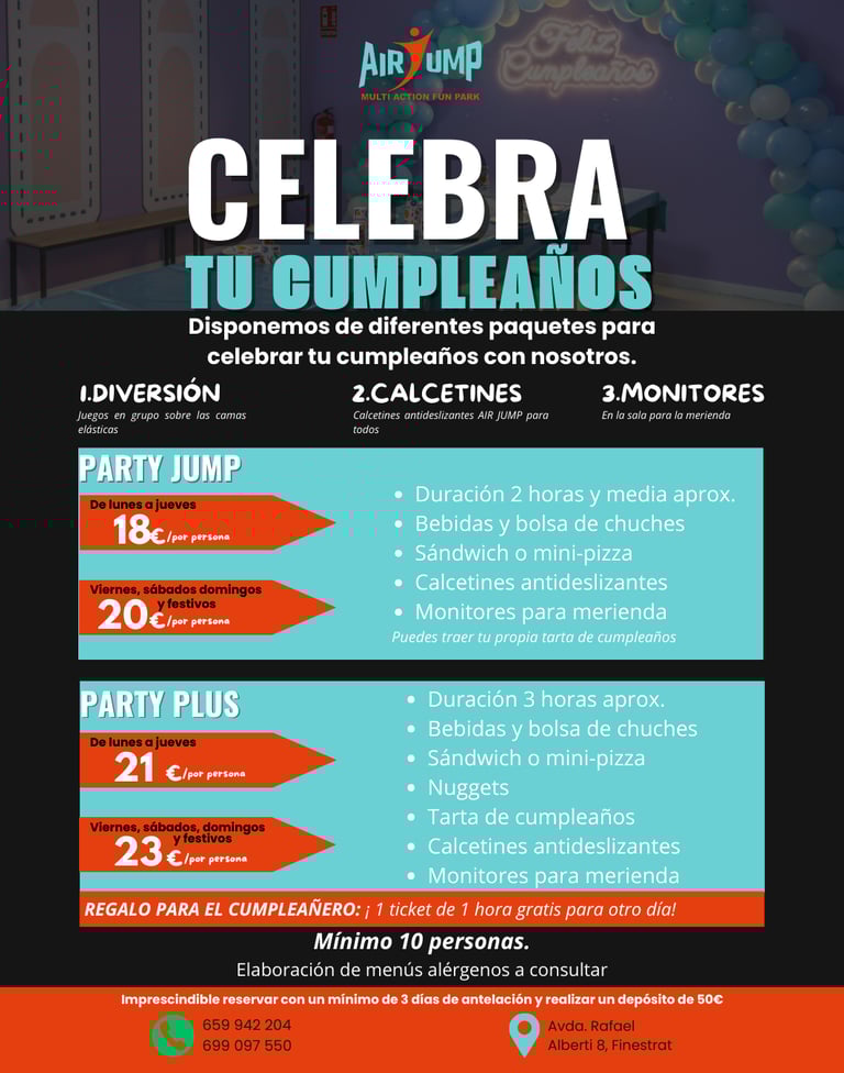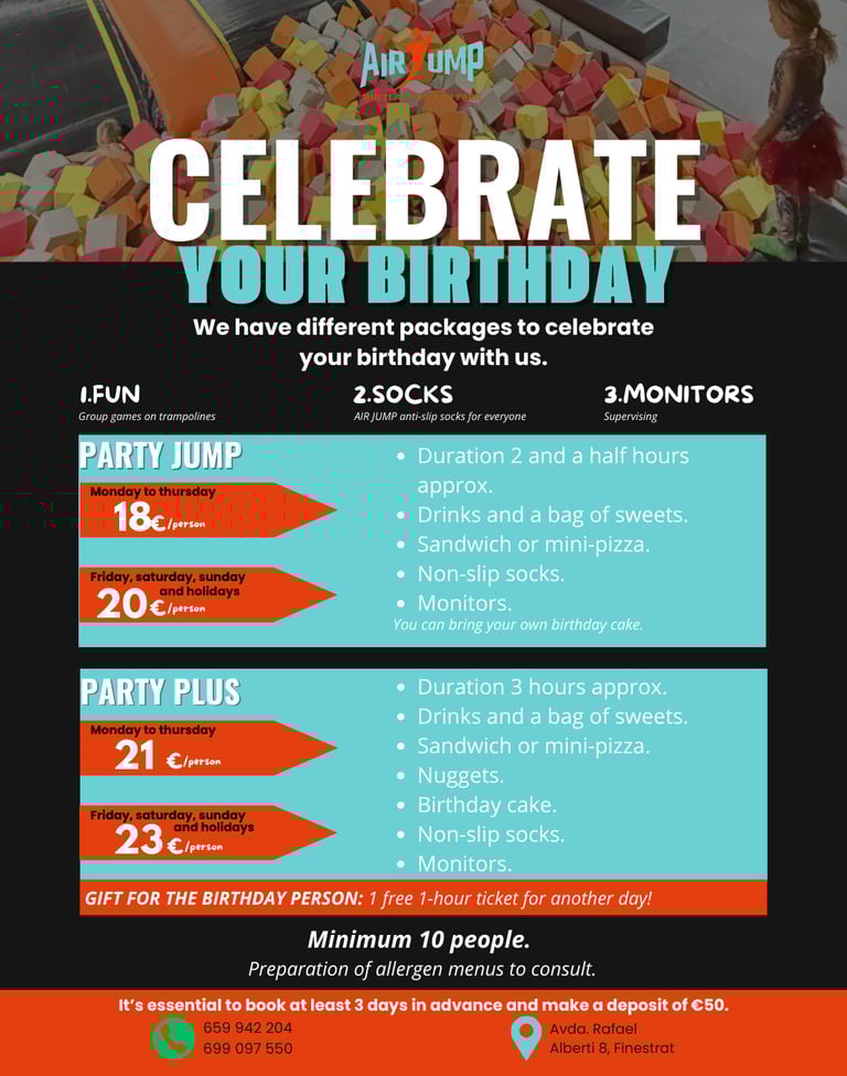 No dudes en contacta con nosotros si eres de Benidorm y quieres celebrar tu cumpleaños de forma original y única con Airjump